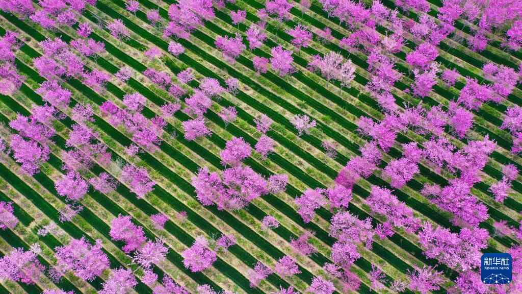 3月29日拍摄的河南省许昌市建安区小召街道办事处河沿张社区紫荆花海(无人机照片)。