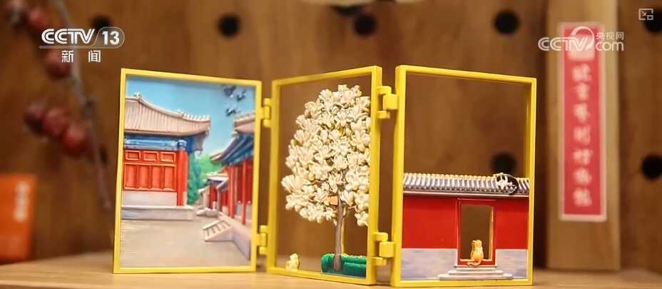 这是有400余年历史的钟楼改建而成的文创空间,这里的玉兰树正在盛放。这款有趣的冰箱贴是三折叠的,每一折都很有面儿,在每一个框架之内都有一幅不同的景观,而把它合上时,就形成了框中景。