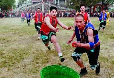 广西崇左市江州区左州镇举办抢花炮民俗活动,迎接即将到来的“三月三”传统佳节。卢文斐摄/光明图片