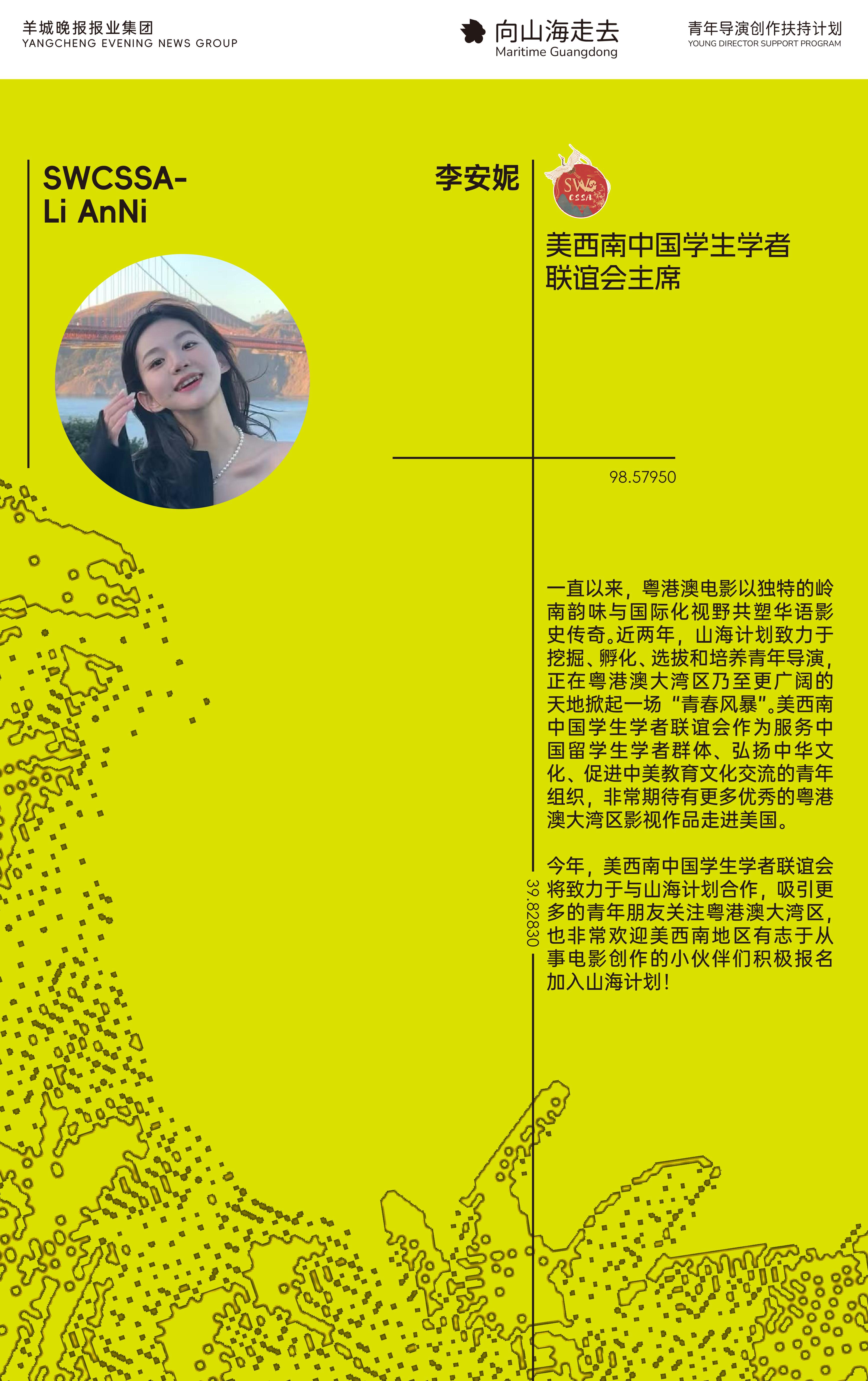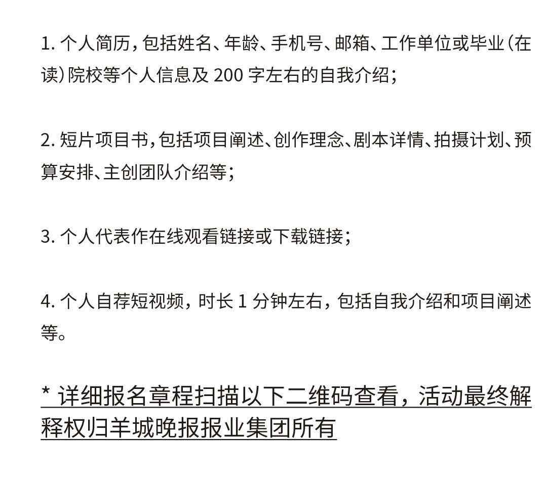 近日,由羊城晚报报业集团主办的第三届“向山海走去”青年导演创作扶持计划(简称山海计划)正式启动报名。3月起,羊城晚报报业集团将携手新加坡、日本、韩国、法国、美国、西班牙、俄罗斯等国家的海外青年组织、高校和文化机构等,在全球范围内举行山海计划短片放映和文化交流活动,开启山海计划全球路演,向海外观众展示开放包容、气象万千的中华文化,并邀请各国青年创作者奔赴粤港澳大湾区取景取材,用世界语态讲述中国故事。