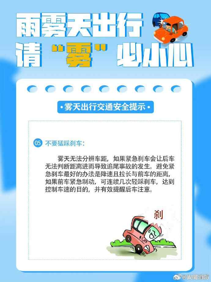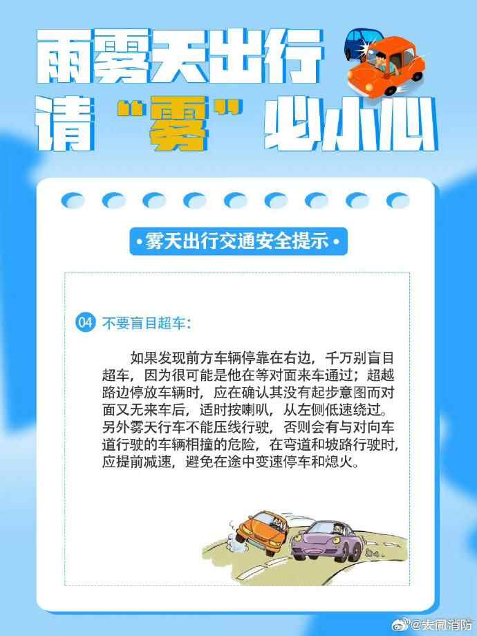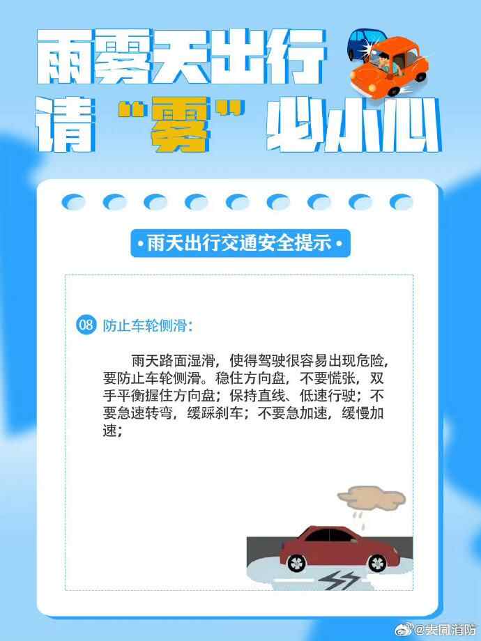 临近清明,雨水叨扰,路面湿滑,能见度降低,司机朋友们要注意安全驾驶,及时开启示廓灯和雾灯,适当增大跟车距离,保持安全车速,注意观察道路情况。