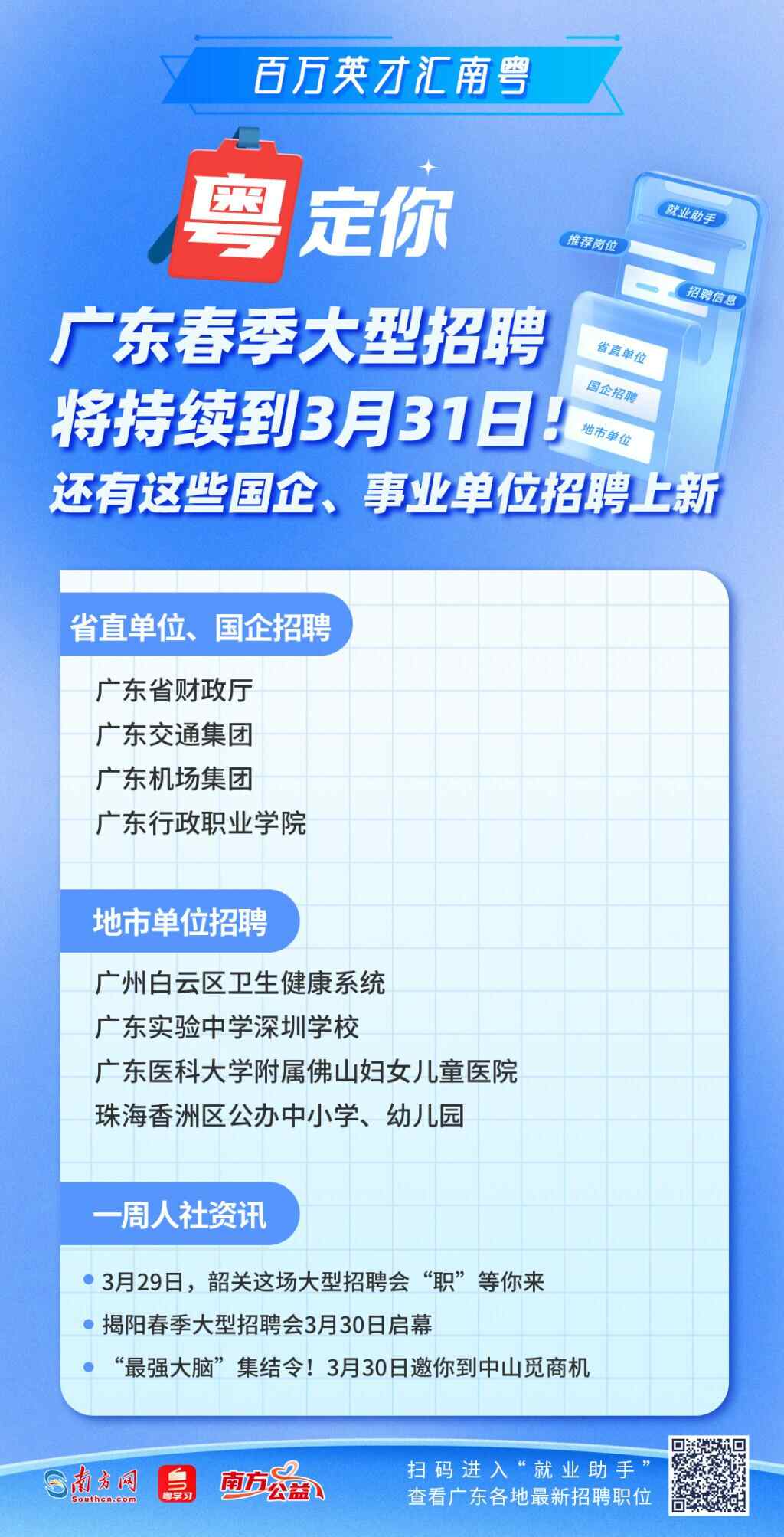 南方网、粤学习客户端本周为你梳理汇总的最新就业资讯来了!