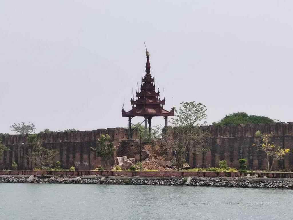 记者留意到,缅甸曼德勒伊洛瓦底江上的地标性建筑物、已有90多年历史的阿瓦大桥部分坍塌,桥梁结构被扭曲成“麻花”状。