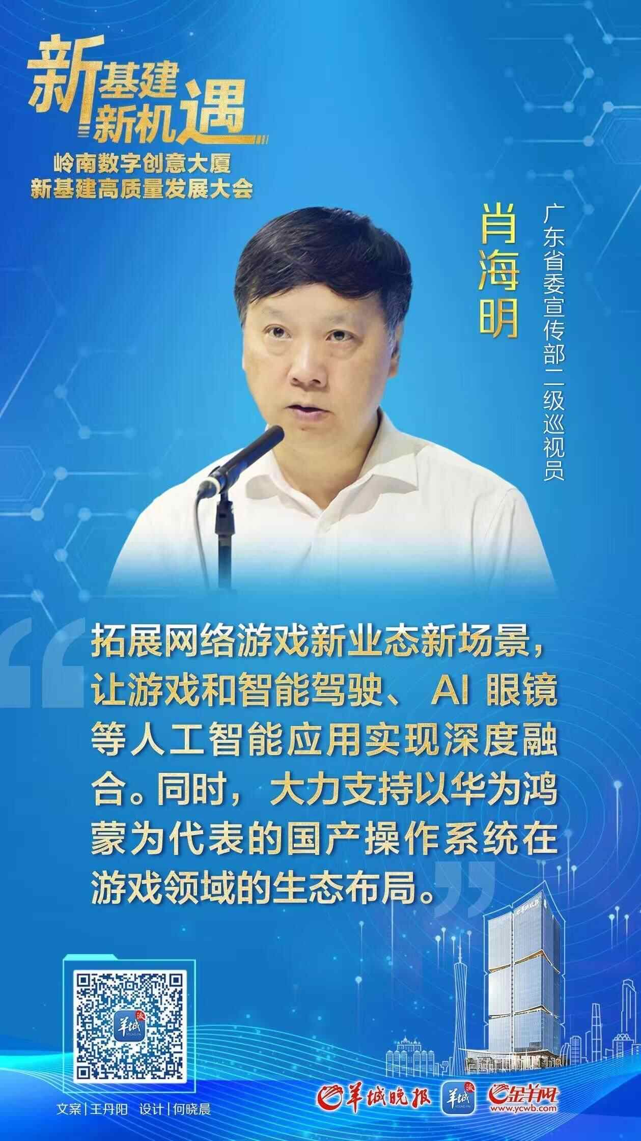 “很高兴与大家相聚在羊城创意产业园,共同参加2025数字创意大会,一起研讨中国游戏产业创新发展的新趋势与新动能。”广东省委宣传部二级巡视员肖海明表示,作为改革开放的前沿,广东不断扶持数字出版、动漫游戏、视频直播等新兴文化业态发展,成为文化产业发展的新动能和新增长点。特别是广东游戏产业,持续跑出高质量发展“加速度”。