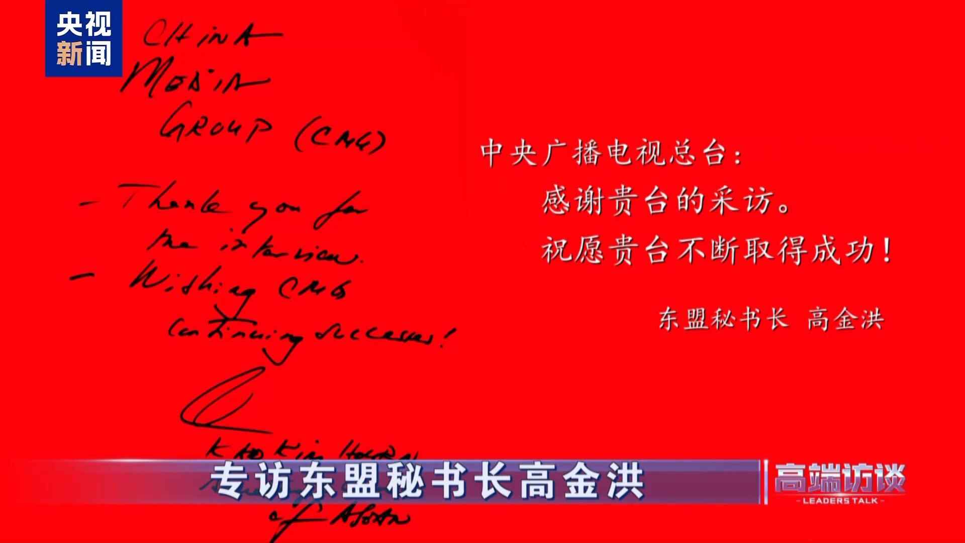 王冠:在专访中,高金洪秘书长表示,中国—东盟合作成果令人瞩目,为11个国家的20多亿人民带来了实实在在的好处,成为亚太地区最具活力、最富有实效的合作典范。高金洪秘书长强调,期待东盟与中国继续共同维护地区长治久安,构建日益紧密的命运共同体。