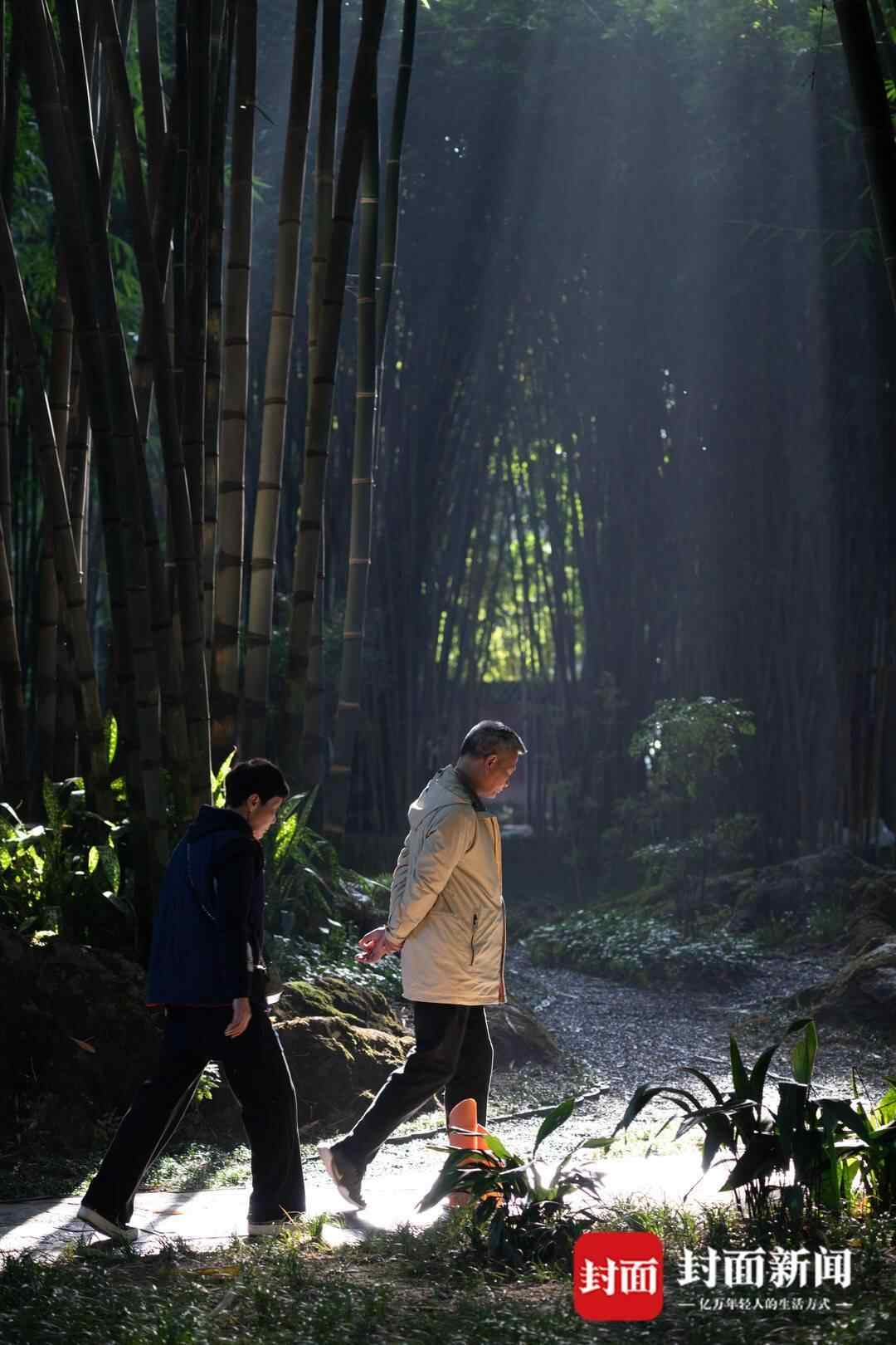 从望江路出发,自南大门步入望江楼公园,沿着锦江朝东北方向而行,一路上茂密的竹子成为了天然的“屏障”,隔绝了阳光的直射,透露出点点温和的光。