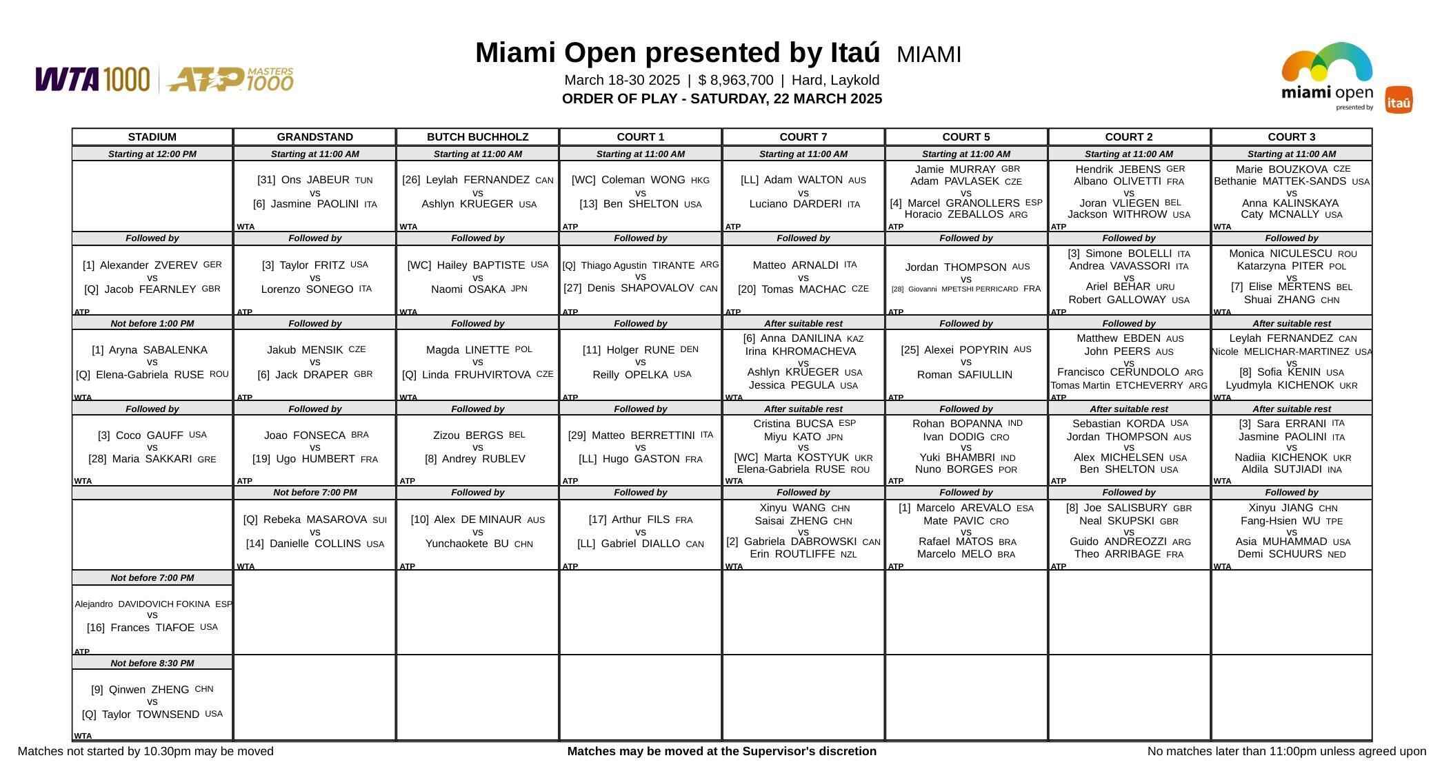 WTA1000迈阿密站第五日赛程出炉,女单上半区第三轮开打。