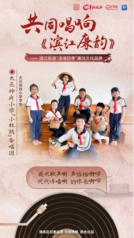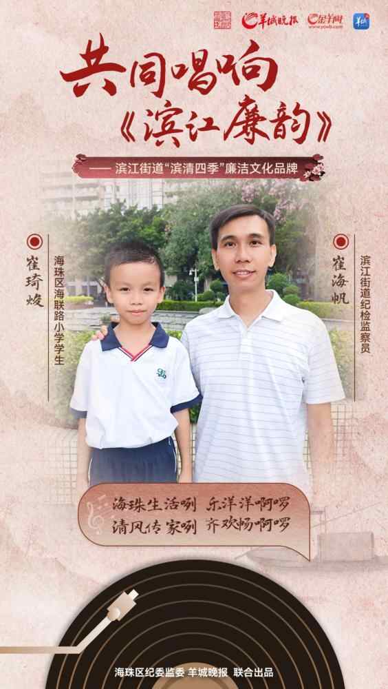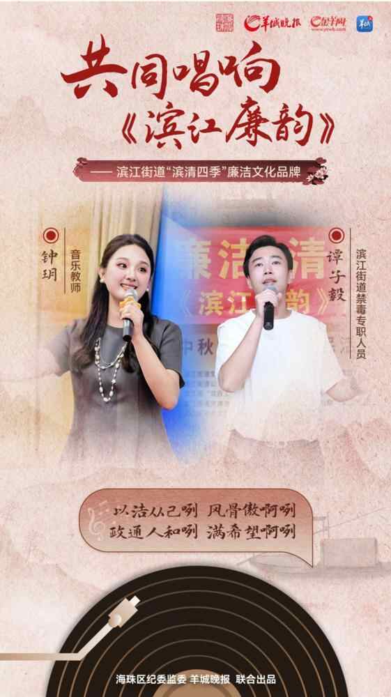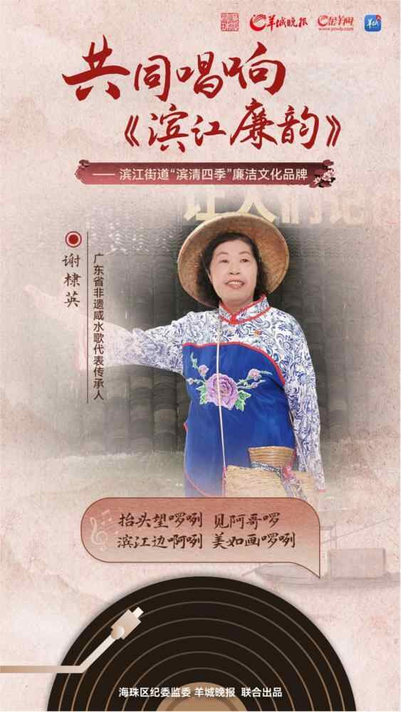 如果您也想成为海报的主角,传唱这首朗朗上口的咸水歌,那就扫描下方海报二维码进入“邀您一起唱《滨江廉韵》”活动H5,成为歌曲传唱人,共同唱响《滨江廉韵》吧!