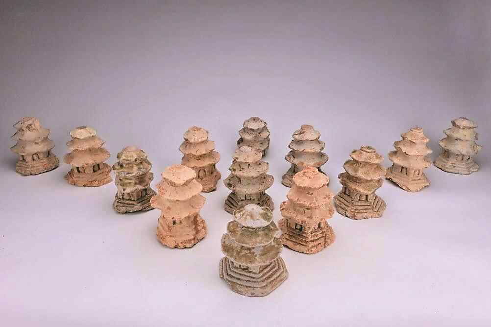 唐至五代时期贝壳堆积灰沟:东西向,西高东低,北部边线较整齐,呈直线状,南部边线中间区域为不规则形状向南外凸,呈曲线状,斜边向下内收,弧底。揭露长53.4米、宽2.6-5.6米。沟内中东部有大量白色圆形海月贝壳堆积,贝壳堆积局部向南外凸。贝壳表面光滑、扁平,应经过人为加工,直径10厘米左右,厚0.1-0.3厘米。出土执壶、熏炉盖、陶佛塔、瓷碗、瓦当、筒瓦、板瓦等遗物。