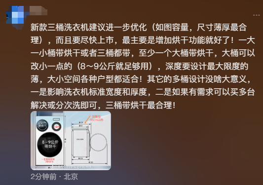 有人对海尔听网友建议新推出的懒人洗衣机提出了修改建议。