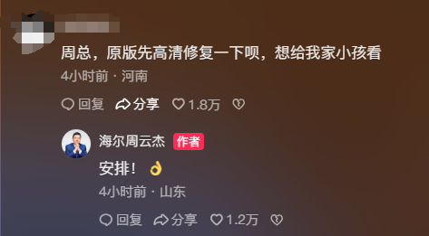 有人许愿想要海尔兄弟高清原版,给自家孩子看,周云杰:安排!