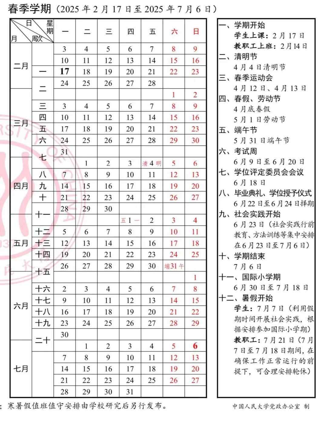 厦门大学嘉庚学院校历显示,今年该校计划4月26日—5月4日放春假,连休9天。