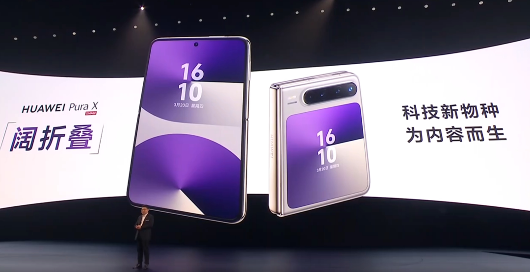 3月20日,华为Pura先锋盛典及鸿蒙智行新品发布会上,华为发布了业界首款阔折叠——华为Pura X。