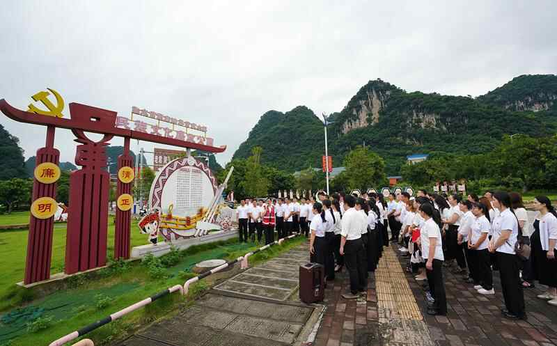 2024年7月1日,在广西融水苗族自治县民族文化廉政公园,预备党员接受廉政教育。