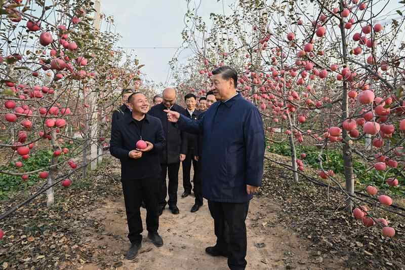 2022年10月26日,党的二十大闭幕不到一周,总书记的身影就出现在陕西省延安市安塞区高桥镇南沟村的苹果园里。