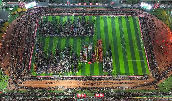 2025年贵州“村超”开幕式现场(2025年1月4日摄,无人机照片)。新华社记者 杨文斌 摄
