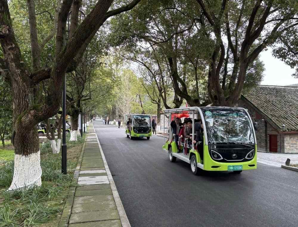 这是游人在乘车游览安江农校纪念园。新华社记者 余春生 摄