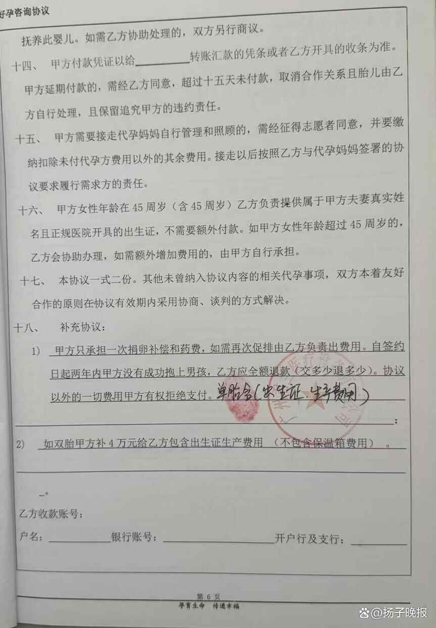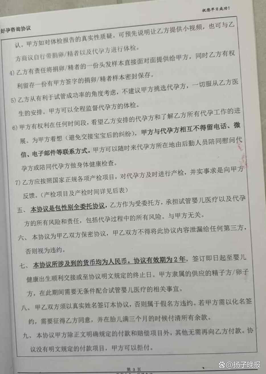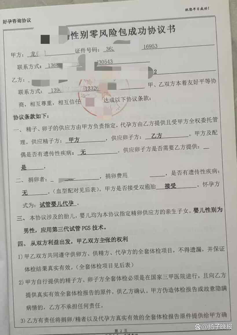 图为龙某签订的代孕合同及相关条款