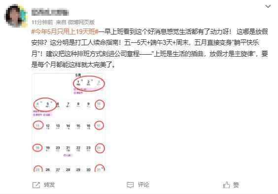 不少网友已经开始期待5月了,“上班的动力又增加了一点点”。