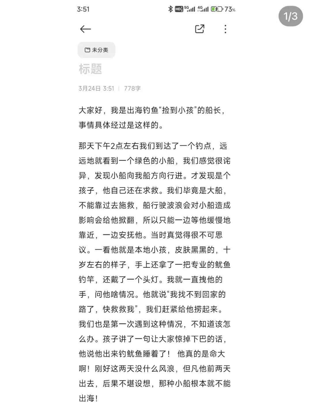 近日,有自称是当时钓鱼船船长的网友在社交平台发文,回应“摆拍”质疑,称绝对不是摆拍。该网友还称,有的人现在以救人者的身份开了直播,“好像还有人冒充救人者去小孩家了”。