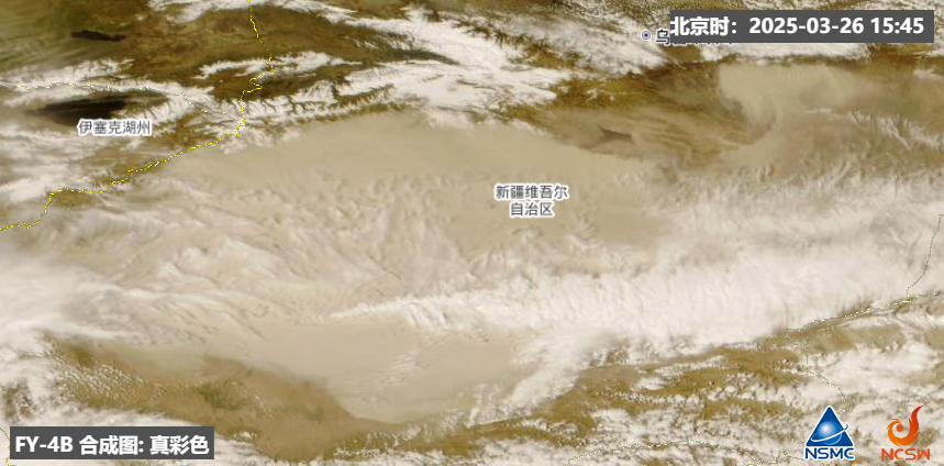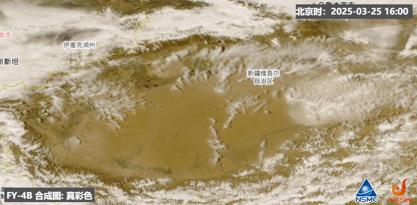尤其新疆塔里木盆地里,今天刮起了强沙尘暴,云图上已经看不到地面了。
