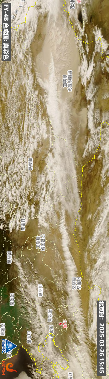 这次寒潮东移南下过程中,也卷起了大范围沙尘。给大家看看今天横跨数千公里,西起新疆塔里木盆地,东至华北平原的巨大沙尘带。