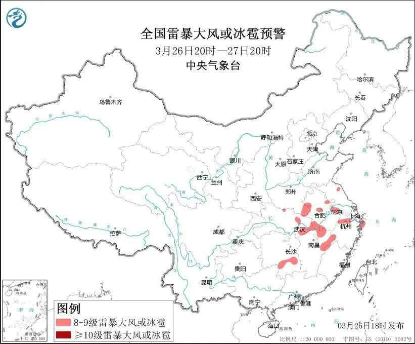 由于近期气温高、大气不稳定能量充足,还容易触发强对流天气。中央气象台今天傍晚还发布强对流蓝色预警。今天夜间,河南东南部、江苏东北部和西南部、安徽中部和西部、湖北东部、湖南东南部、江西北部、浙江北部等地将有8级以上雷暴大风或冰雹天气。