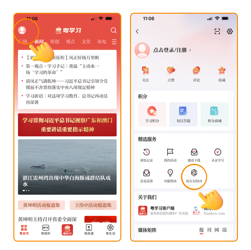 “南方AI校对”正式上线后,将针对个人用户免费开放使用。您可下载粤学习客户端,点击左上角“个人主页”,即可在“精选服务”栏中点击进入“南方AI校对”。粤学习客户端注册用户每日在端内可享受2次免费服务。