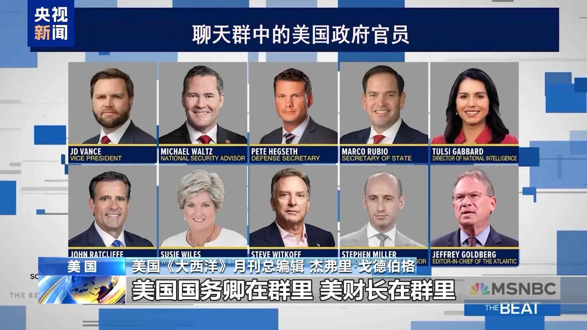 美国《大西洋》月刊总编辑 杰弗里·戈德伯格:聊天群里不仅有中情局情报官员,也不仅有国防部官员,美国国务卿在群里,美财长在群里,白宫幕僚长在群里,我记得美国总统助理斯蒂芬·米勒也在群里。从在通信平台“信号”中收到入群邀请开始,这个事件的大多数方面都让我感到惊讶。