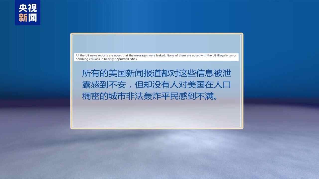 还有人说,所有的美国新闻报道都对这些信息被泄露感到不安,但却没有人对美国在人口稠密的城市非法轰炸平民感到不满。