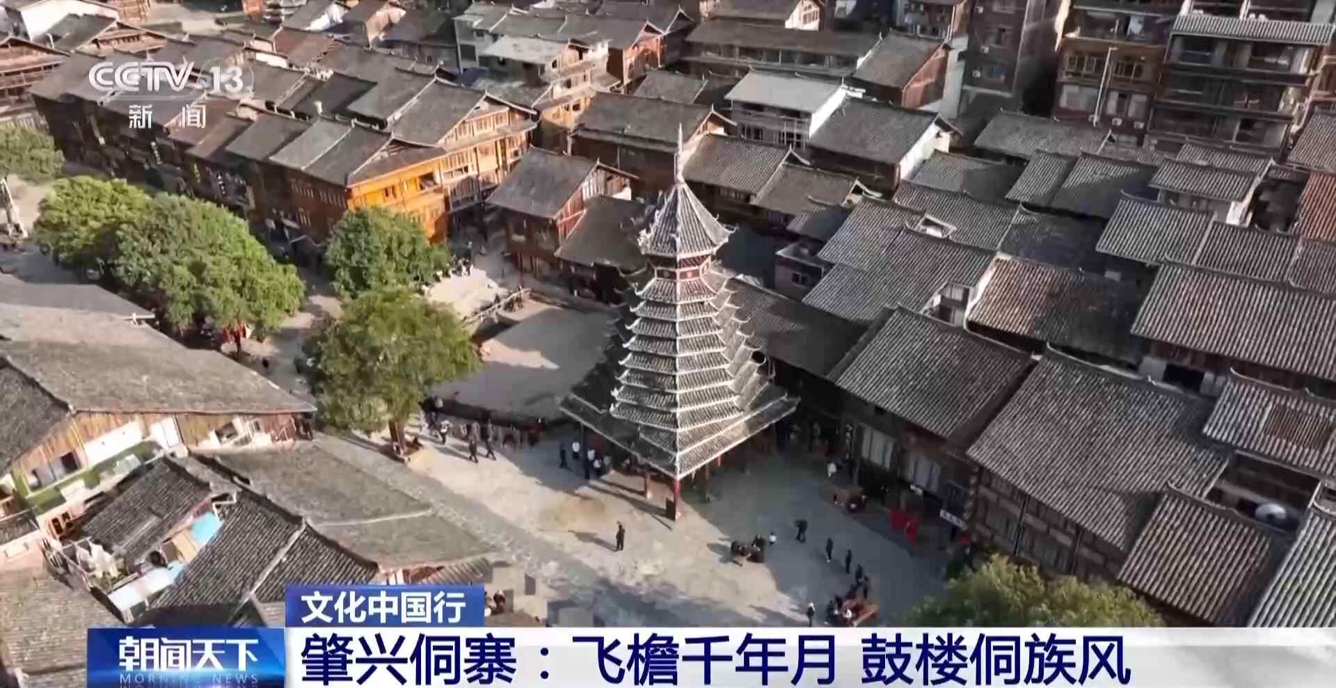 侗族人说,看到鼓楼,就看到了家乡。在肇兴侗寨,鳞次栉比的吊脚楼间,五座高大的鼓楼拔地而起,分外醒目,就像枝繁叶茂的参天大树。如果把依河而建的寨子,想象成一条前行的大船,五座鼓楼正好分布在船头、船篷、船舱、船帆、船尾的位置。