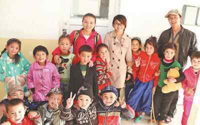 图为邵书琴(后排左二)邀请志愿者到牧场小学开展活动。