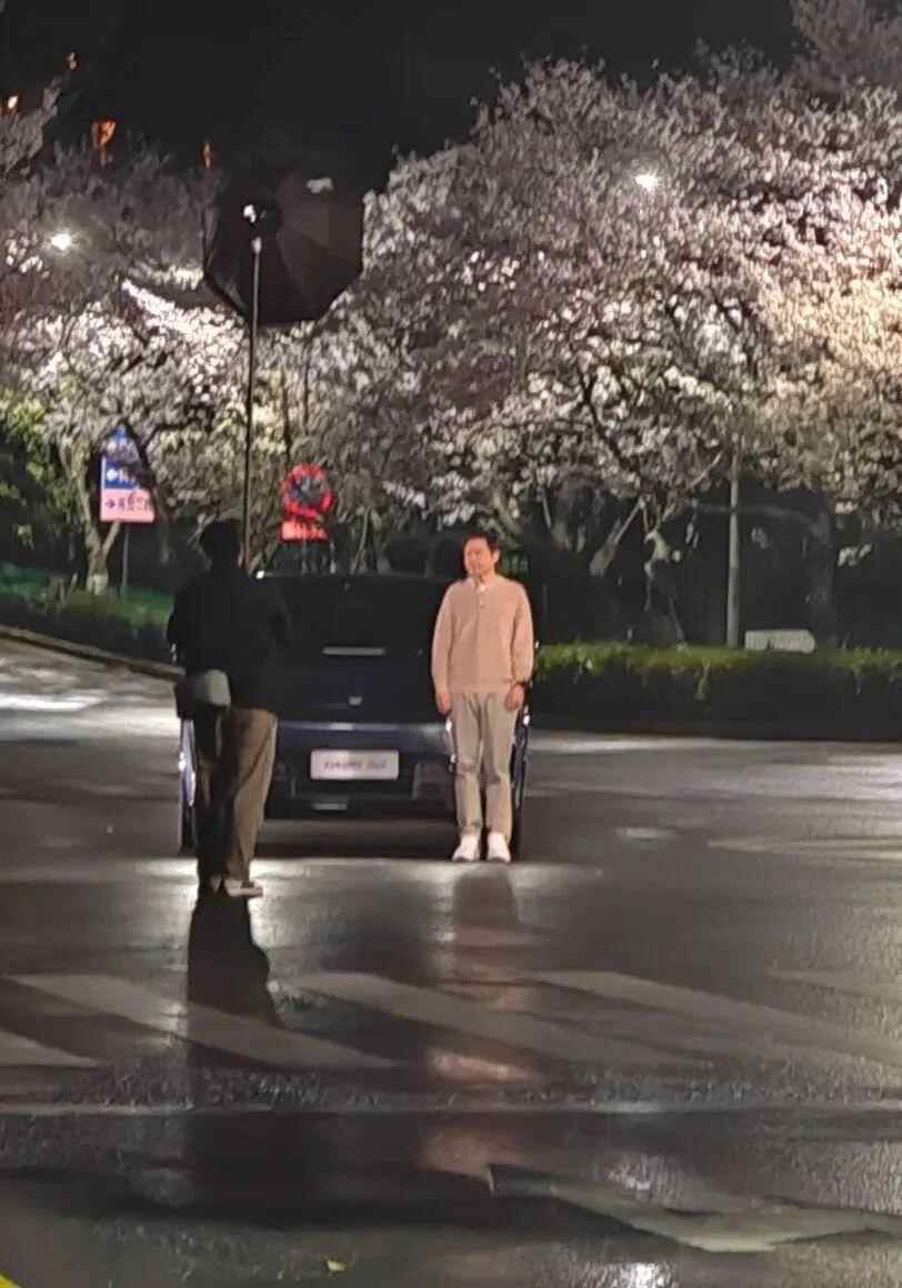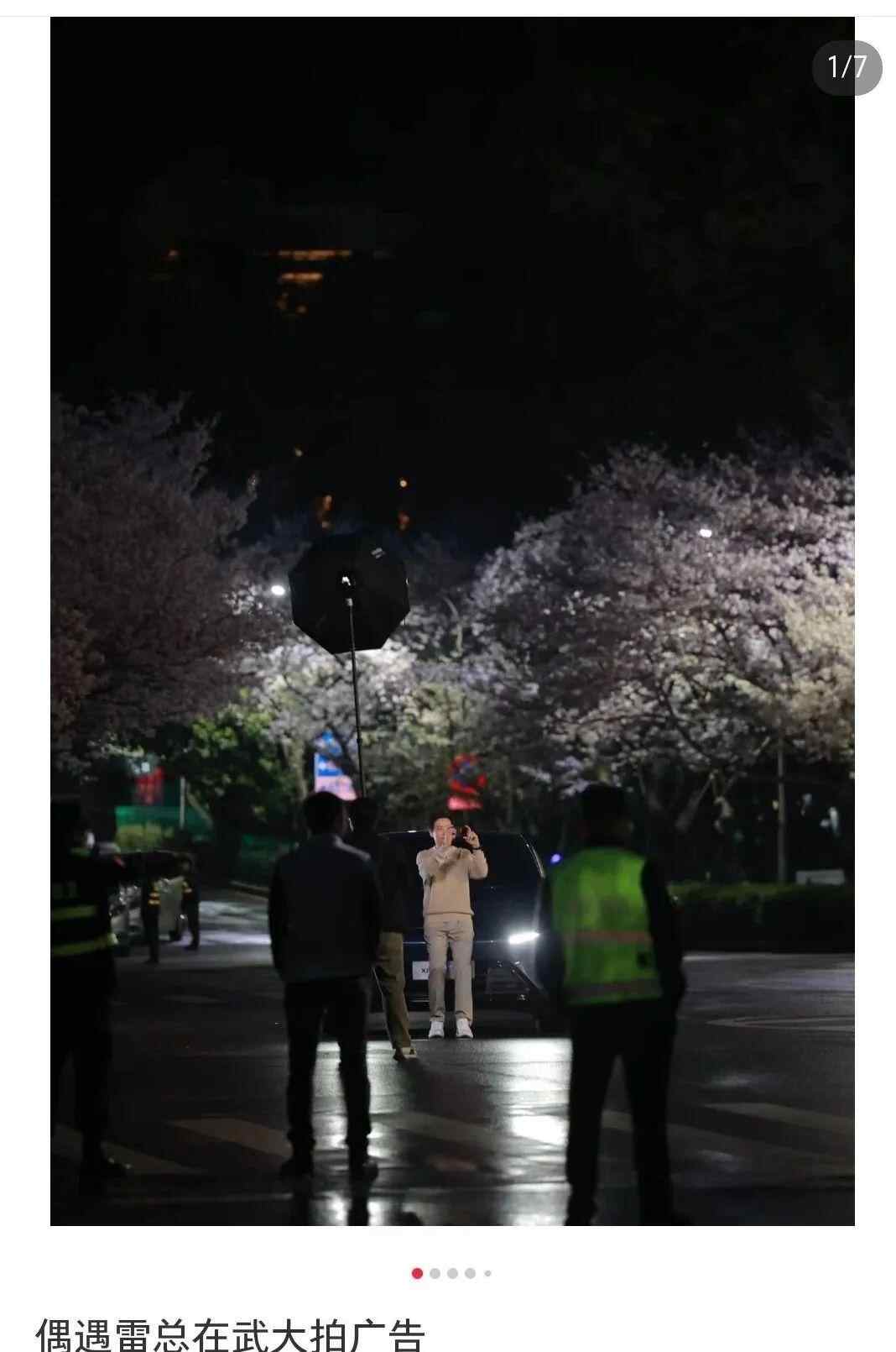 有网友在社交平台上发文:好幸运,偶遇雷总在武大拍广告。