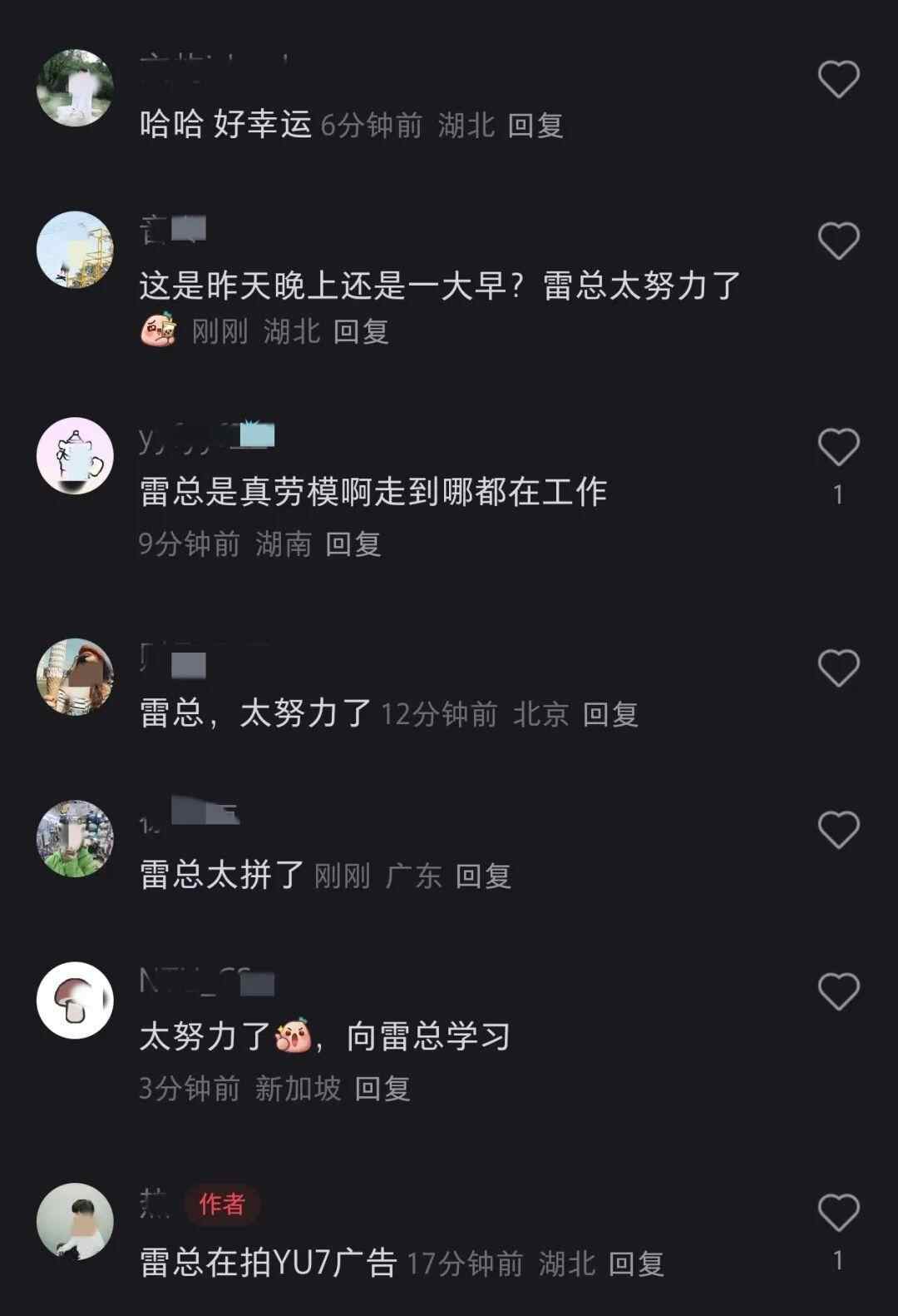 网友也表示:雷军真是劳模啊,在哪都在工作。
