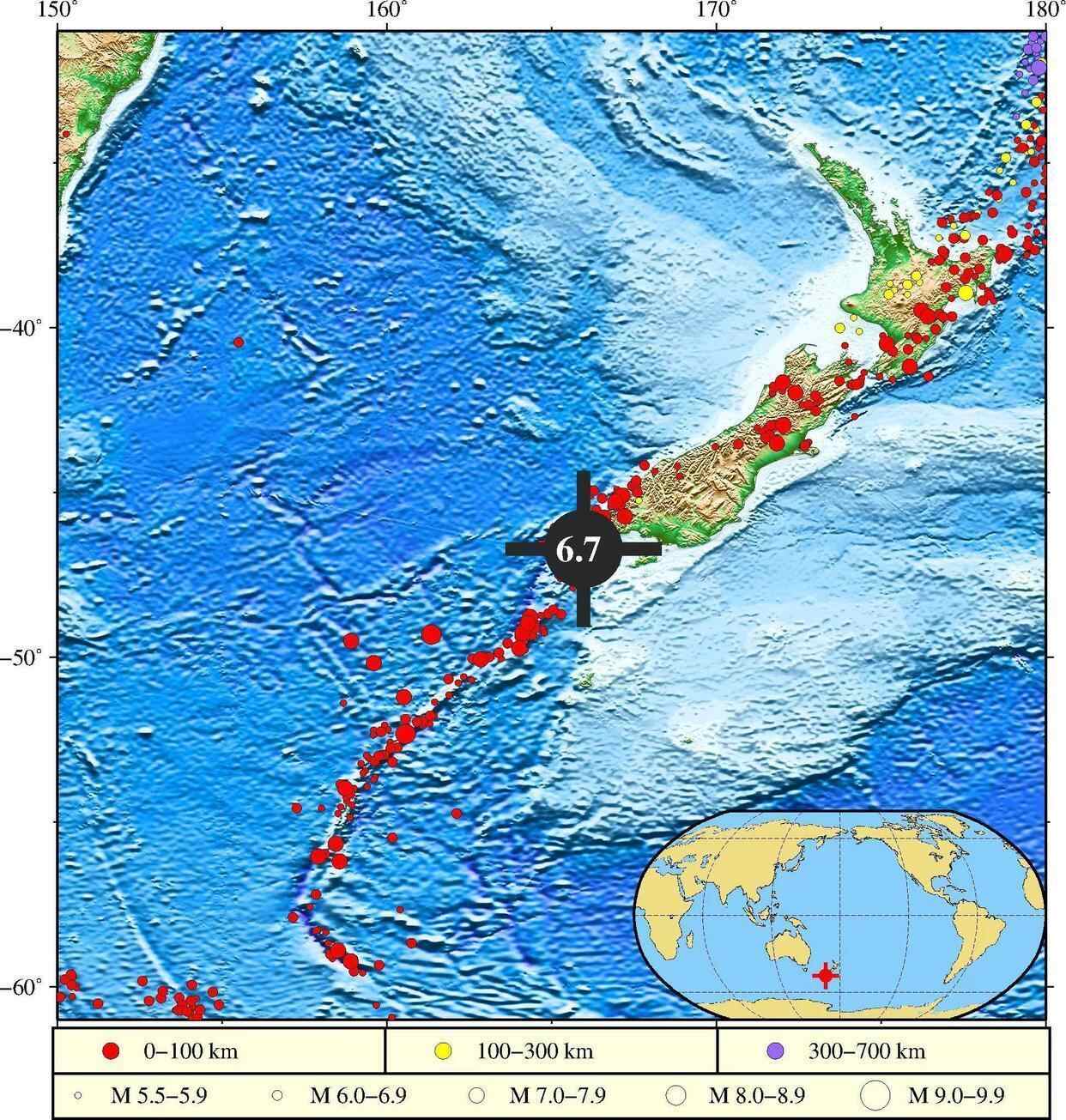 消息说,当地时间14时43分(北京时间9点43分),新西兰南岛南端附近海域发生6.8级地震,震中位于斯奈尔斯群岛西北方向约160公里处,震源深度10公里。美国地质调查局地震信息网最初测定这一地震的震级为7级。
