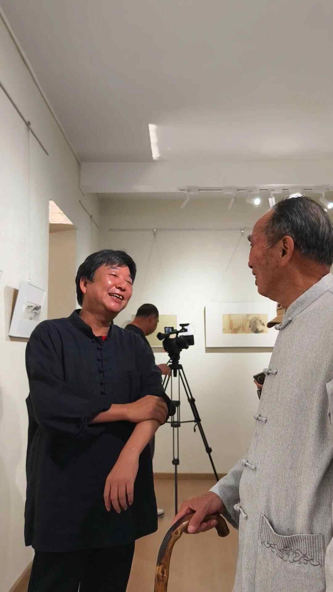 下午,在可可美术空间,刘国玉先生迈着轻快的步伐进来了,他那招牌式的爽朗笑声不时响起。倪宽先生请他坐主位,两个人谦让了一番,刘先生拗不过,还是要坐在指定位置。于是问了一嘴左腿右腿。