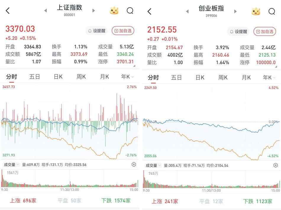 至收盘,上证综指涨0.15%,报3370.03点;科创50指数涨0.29%,报1045.94点;深证成指涨0.07%,报10695.49点;创业板指涨0.01%,报2152.55点。