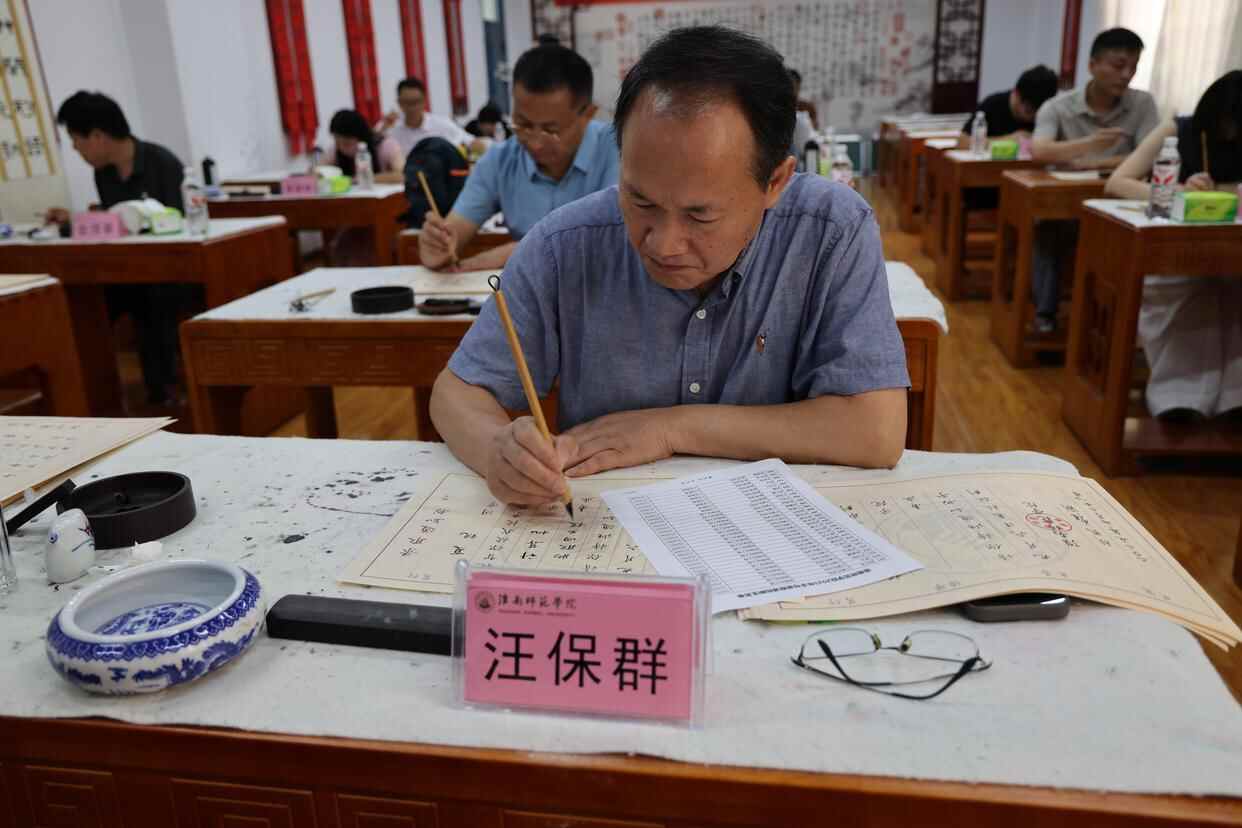活动当日,17名退休教师、在职教师、在校学生及校友齐聚该校生物工程楼教师教育实训中心书法教室。只见诸位书写者们凝神聚气,在录取通知书上郑重写下新生的姓名、录取学院及专业名称。值得关注的是,今年的通知书在设计和工艺方面都进行了升级,相较于往年更加古朴雅致。