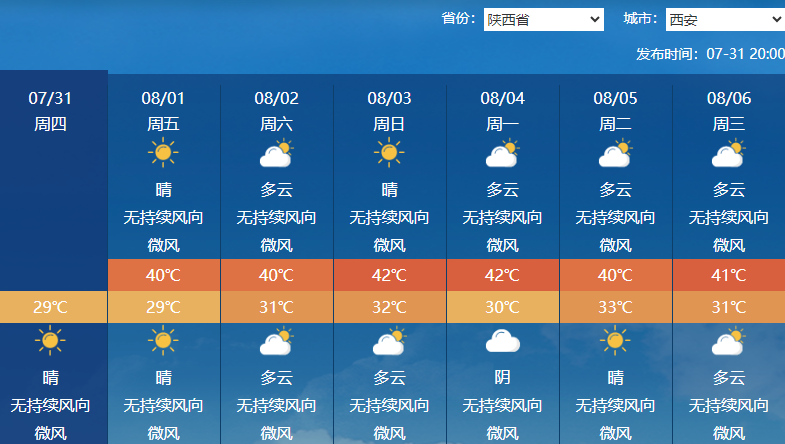 预计今后10天,华北南部、黄淮中西部、江汉、江淮西部、江南西北部、四川盆地以及陕西南部等地将有6至10天的高温天气,重庆、陕西关中等地最高气温在39至43℃。