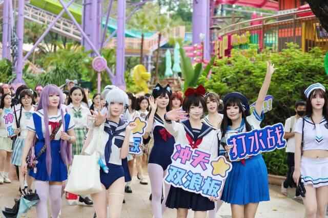 产业链下游,“谷子经济”可以与餐饮、文旅、美陈等传统业态实现联动,催生出更多“泛二次元”联名产品。番禺长隆欢乐世界一直是此中翘楚,频繁举办“二次元”派对、coser巡游等活动。