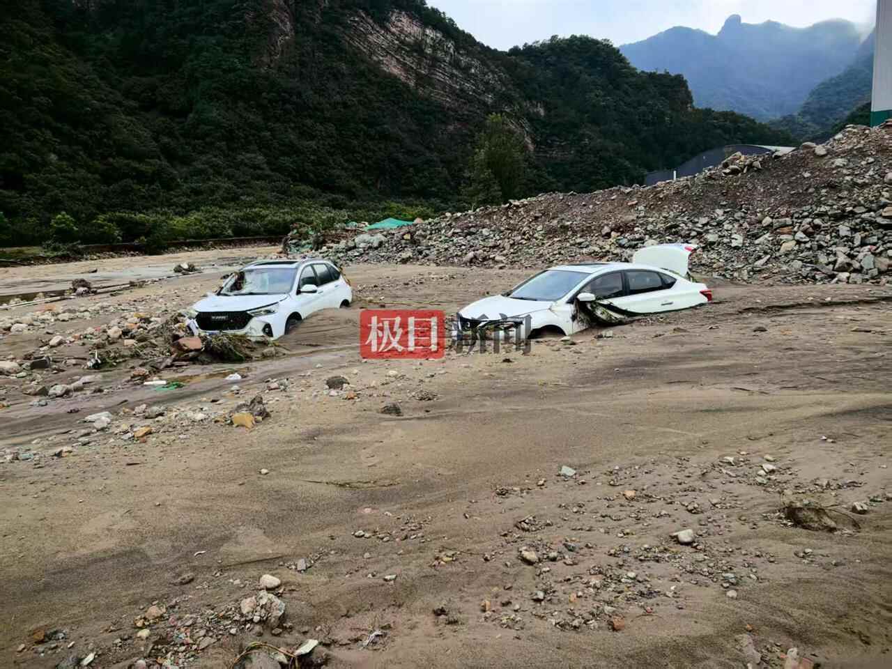 李女士发布的视频显示,浑浊的洪水将道路完全淹没,一些树木被冲倒。她还向记者表示,看到民宿门口和上游的车一辆接一辆被冲走,甚至有半挂车被洪水推走。一行人的4辆私家车,包括她自己的一辆福特SUV在内也都被冲走。