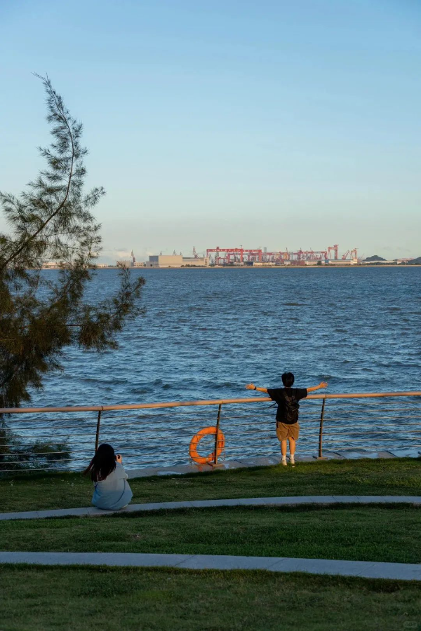 这里是滨海露营的好去处,人们暂别城市喧嚣,在草坪扎营安坐,或打闹嬉戏,或野餐小酌,或眺望大桥海景……