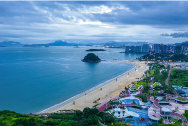 东莞黄金海岸拥有长达7.5公里的生态海岸线,串联骑行、观海、玩沙等多种体验。