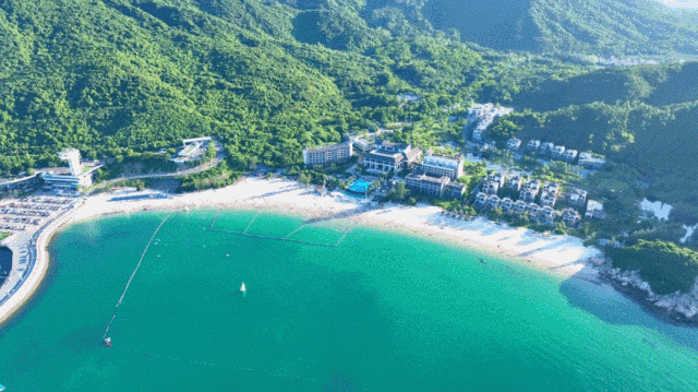 桔钓沙位于深圳市龙岗区南澳街道,三面环山,海湾绵延1公里。