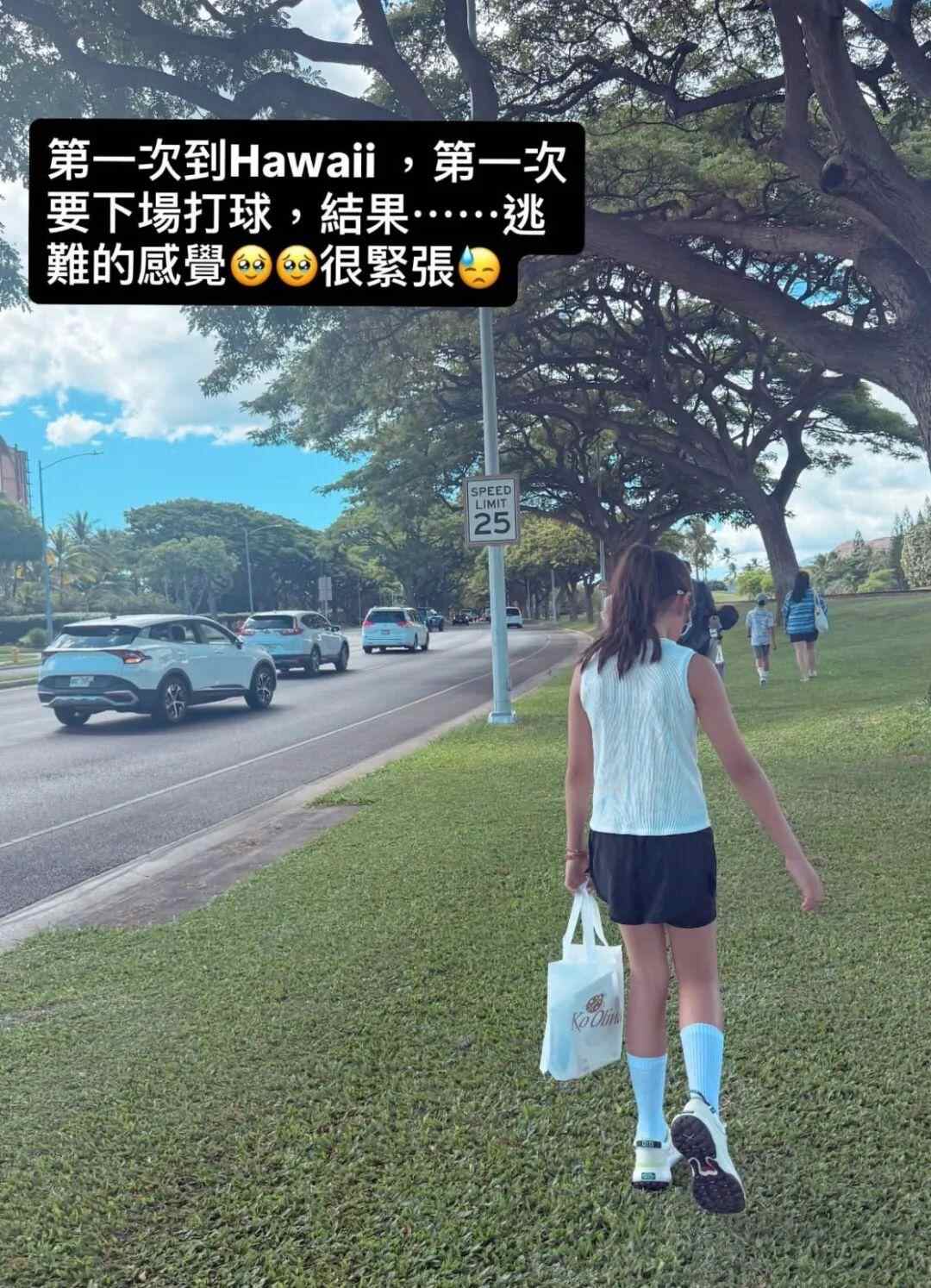 她还透露,自己是第一次到夏威夷,正准备下场打球,结果体会到“逃难的感觉,很紧张”。