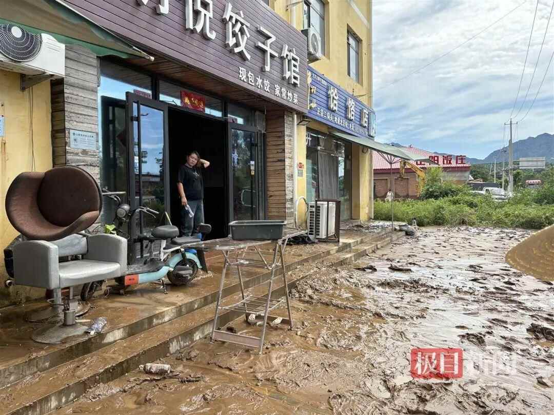 7月29日下午,记者在密云区太师屯镇正阳社区附近看到,主街大部分地方积水已经退去,地上残留厚厚一层淤泥,最深地方约有20厘米深,沿街商户正用铲子清理店内淤泥。