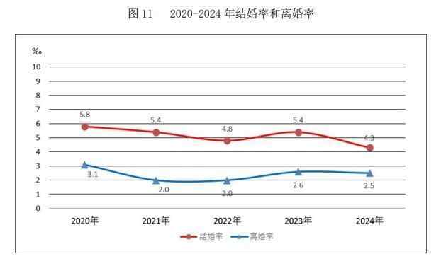 据民政部7月30日公布的《2024年民政事业发展统计公报》显示,2024年,全国婚姻登记机构和场所共计4190个,其中婚姻登记机构1134个,全年依法办理结婚登记610.6万对,比上年下降20.5%。结婚率为4.3‰,比上年下降1.1个千分点。