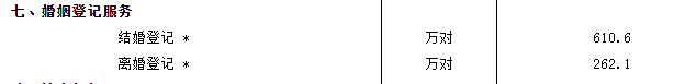 依法办理离婚手续351.3万对,其中:民政部门登记离婚262.2万对,法院判决、调解离婚89.1万对。离婚率为2.5‰。