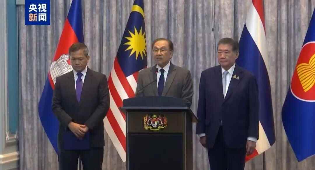 报道称,早些时候,在马来西亚举行了两个多小时的会谈后,在泰国和柬埔寨领导人的陪同下,马来西亚总理安瓦尔在新闻发布会上表示:“这是迈向缓和局势、恢复和平与安全的关键第一步。”
