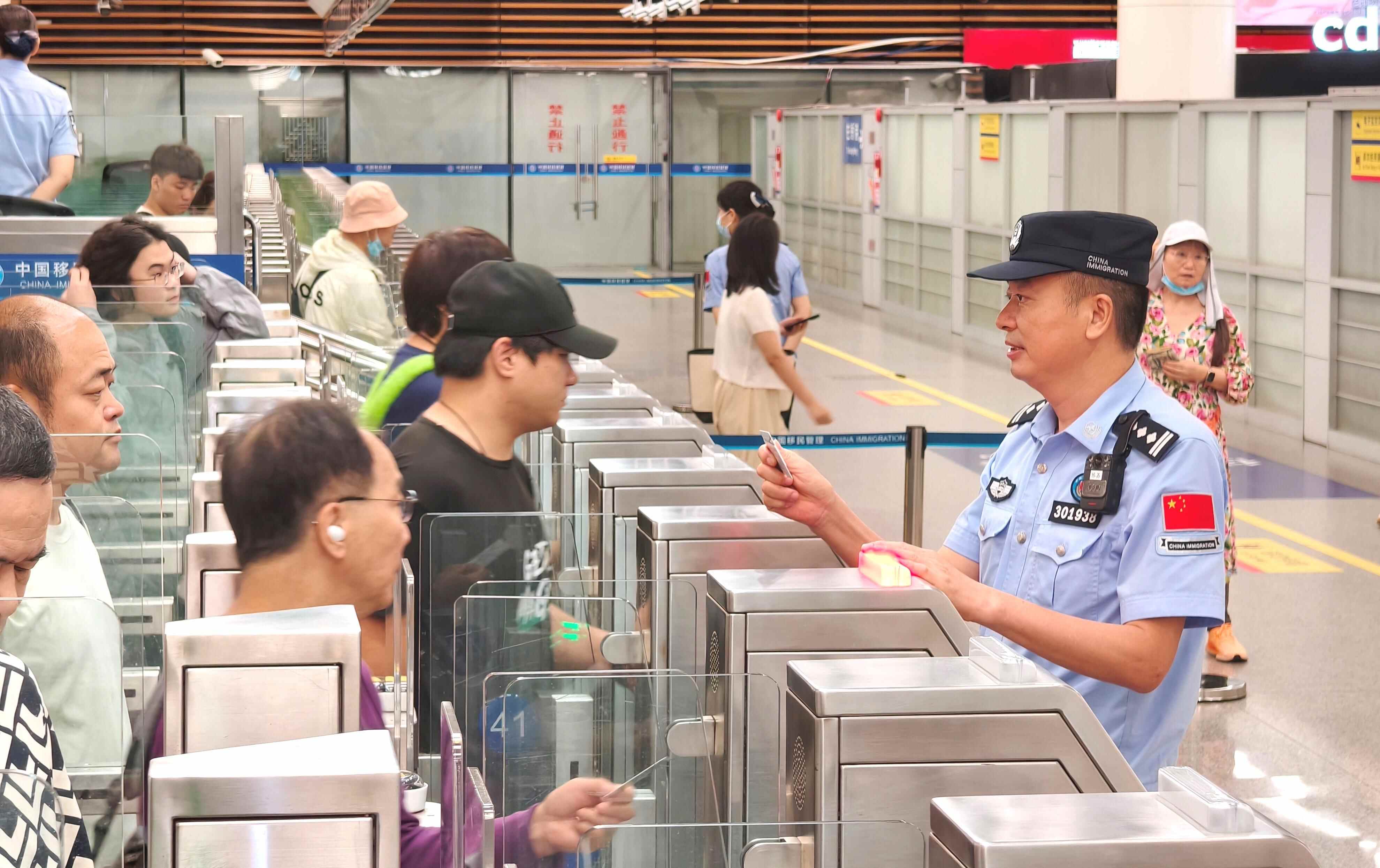 在深圳福田口岸,川流不息的出境大厅中,总能看到一位身姿挺拔的移民管理警察。他两鬓微霜,目光如炬,时而严谨细致地查验证件,时而俯身为旅客答疑解惑,时而搀扶行动不便的老人办理手续。他就是深圳出入境边防检查总站皇岗边检站执勤十六队四级高级警长黄国春,从军旅到警营,这位“老兵”已经坚守国门35年。